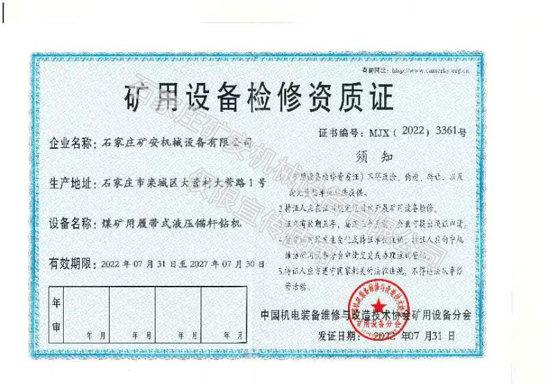 石家莊礦安機械設(shè)備有限公司成立于2011年3月,公司位于風(fēng)景優(yōu)美、科技發(fā)達、交通便利的石家莊市欒城區(qū),是一家專注生產(chǎn)煤礦井下支護機具(錨桿鉆機)和安全鉆機(防突,架柱等)及氣動隔膜泵等礦用機械設(shè)備的********,是國內(nèi)煤礦機械裝備的生產(chǎn)商和服務(wù)商,根據(jù)用戶需求提供井下適用的鉆機施工解決方案。公司致力于打造研發(fā)、制造、銷售、服務(wù)為一體的現(xiàn)代化企業(yè),全心全意為煤礦生產(chǎn)保駕護航。 ? 公司建有裝配車間、機加車間和調(diào)試車間,擁有嚴(yán)格的質(zhì)量控制體系、先進的產(chǎn)品開發(fā)系統(tǒng)、完善的試驗檢測設(shè)施、良好的售后服務(wù)保障。先后與中煤科工集團沈陽研究院、西安研究院、太原理工大學(xué)、燕山大學(xué)等知名院校建立了緊密的合作關(guān)系。 ? 公司產(chǎn)品主要銷往山西、陜西、山東、內(nèi)蒙古、黑龍江、云南、貴州等七十多個礦區(qū)和地方煤礦,擁有一支成熟的售后技術(shù)團隊,并且和中煤集團、華電煤業(yè)集團、華潤煤業(yè)集團、潞安集團、山西焦煤、淮北礦業(yè)等國內(nèi)知名企業(yè)達成長期合作關(guān)系。 ? 公司始終秉持“讓煤礦生產(chǎn)更安全”的發(fā)展使命,力求誠信與創(chuàng)新,追求卓越與完美,深知“實實在在、心無旁騖做實業(yè)”,這才是本分!石家莊礦安機械設(shè)備有限公司愿與您攜手共進,共同發(fā)展!為客戶創(chuàng)造價值,提供優(yōu)質(zhì)的產(chǎn)品和*佳的服務(wù)是我們永無止境的理念!